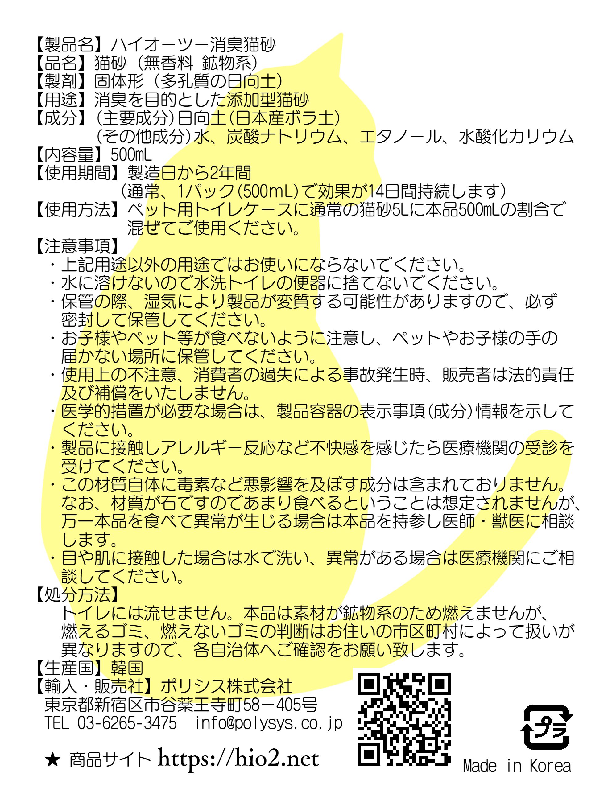 【商品名】ハイオーツー(Hi.O₂)消臭猫砂:Cat Litter 2袋セット